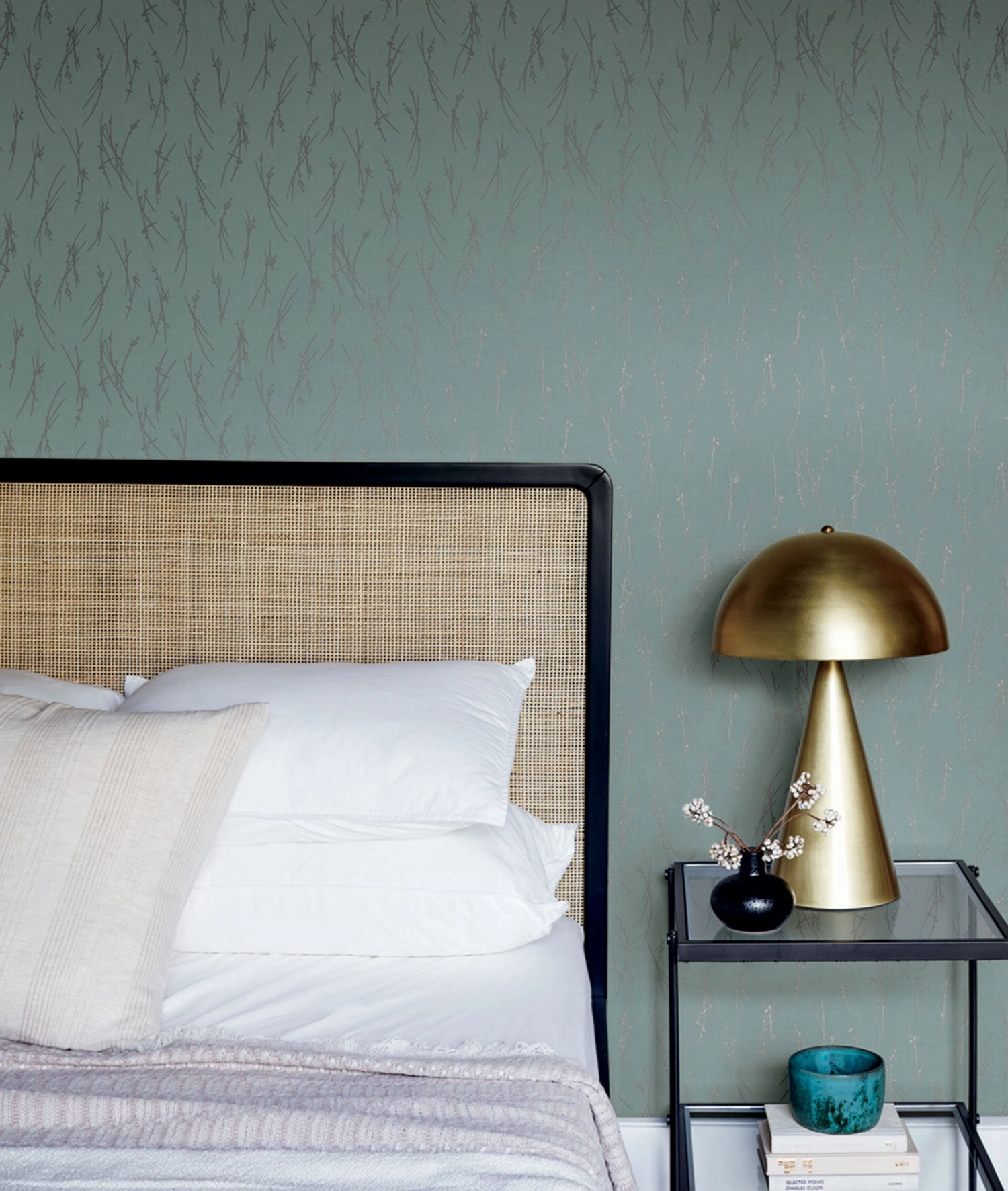 York tapéta kék alapon metál ezüst absztrakt faág mintával