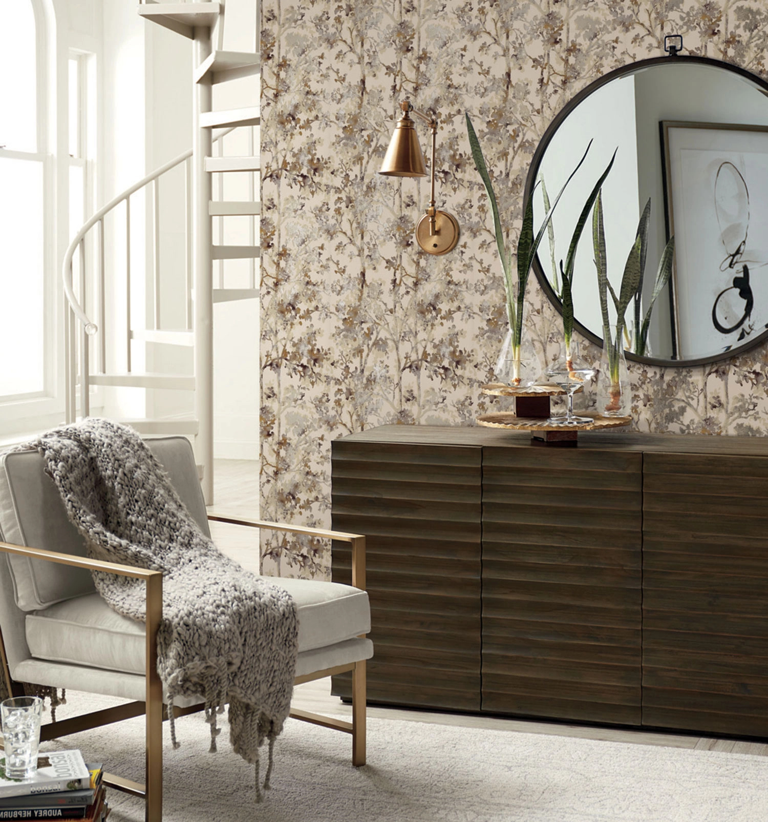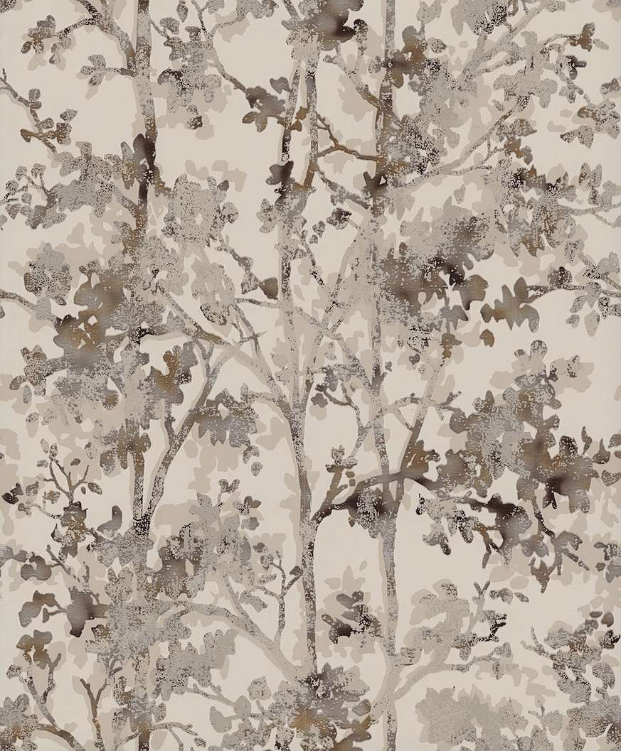 York tapéta krém alapon metál arany és ezüst virágzó fa sziluett mintával