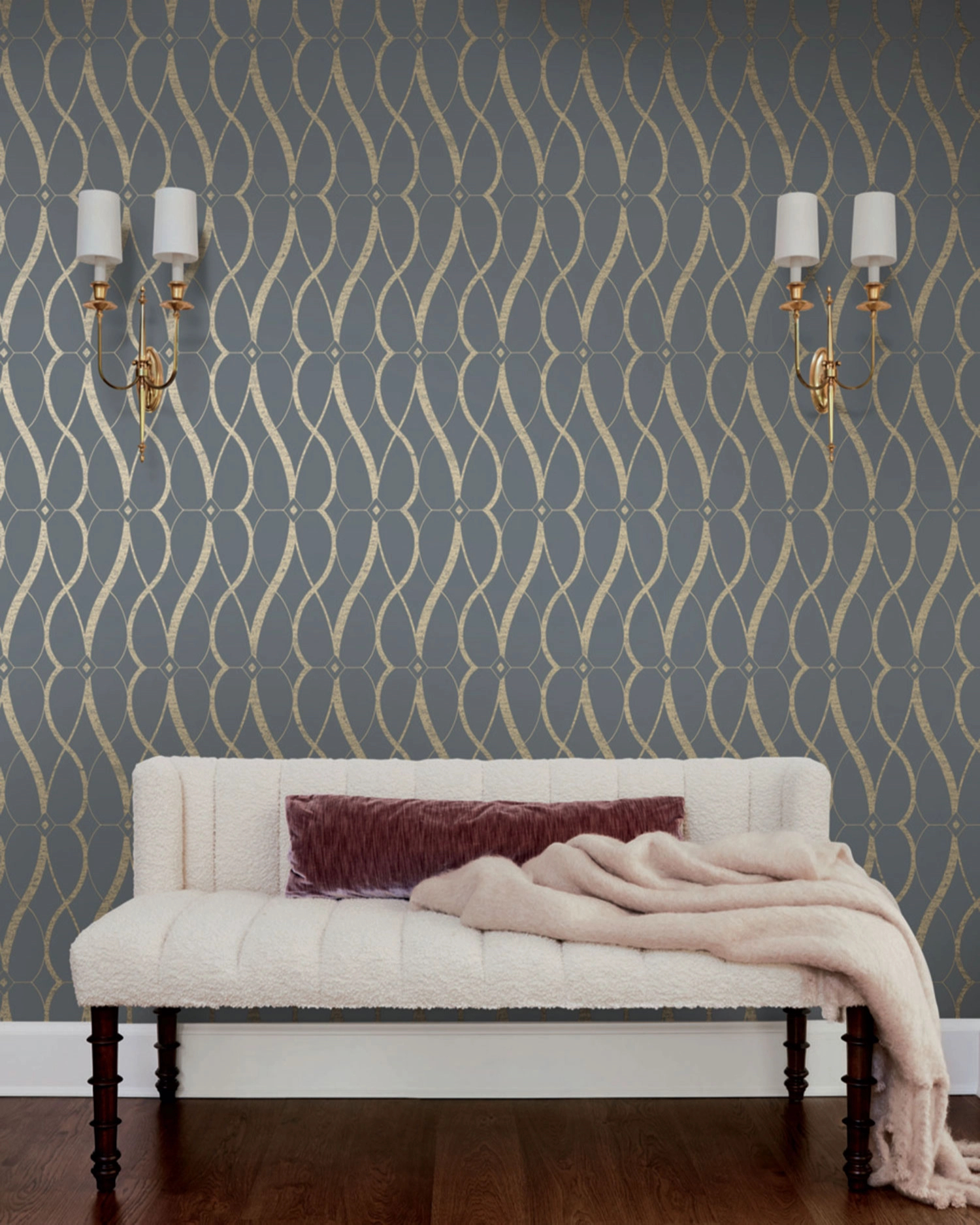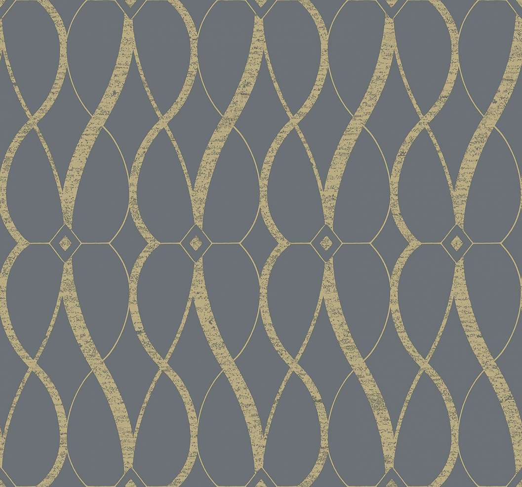 York tapéta szürke alapon metál arany absztrakt hullám mintával