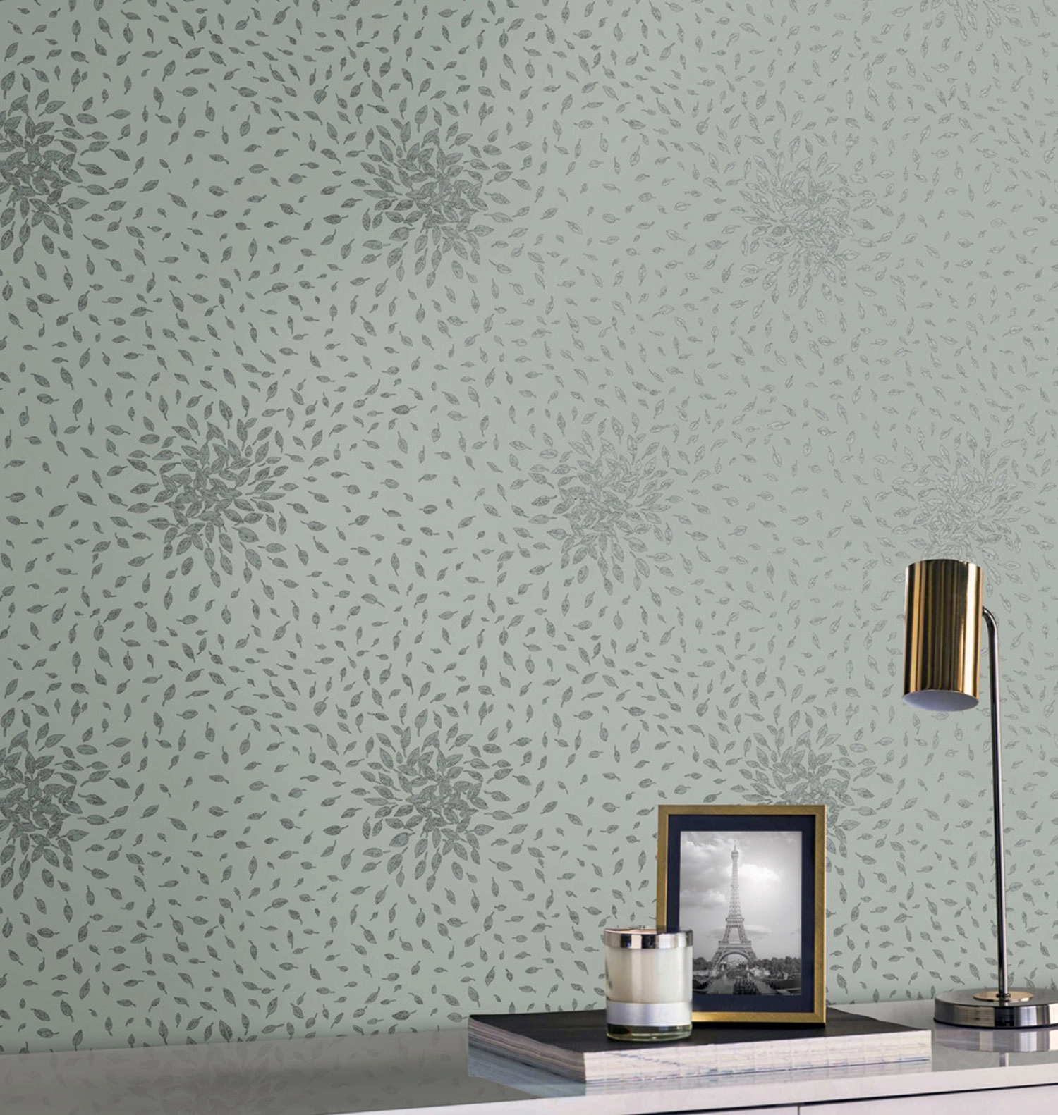 York tapéta szürke alapon metál ezüst absztrakt levél mintával