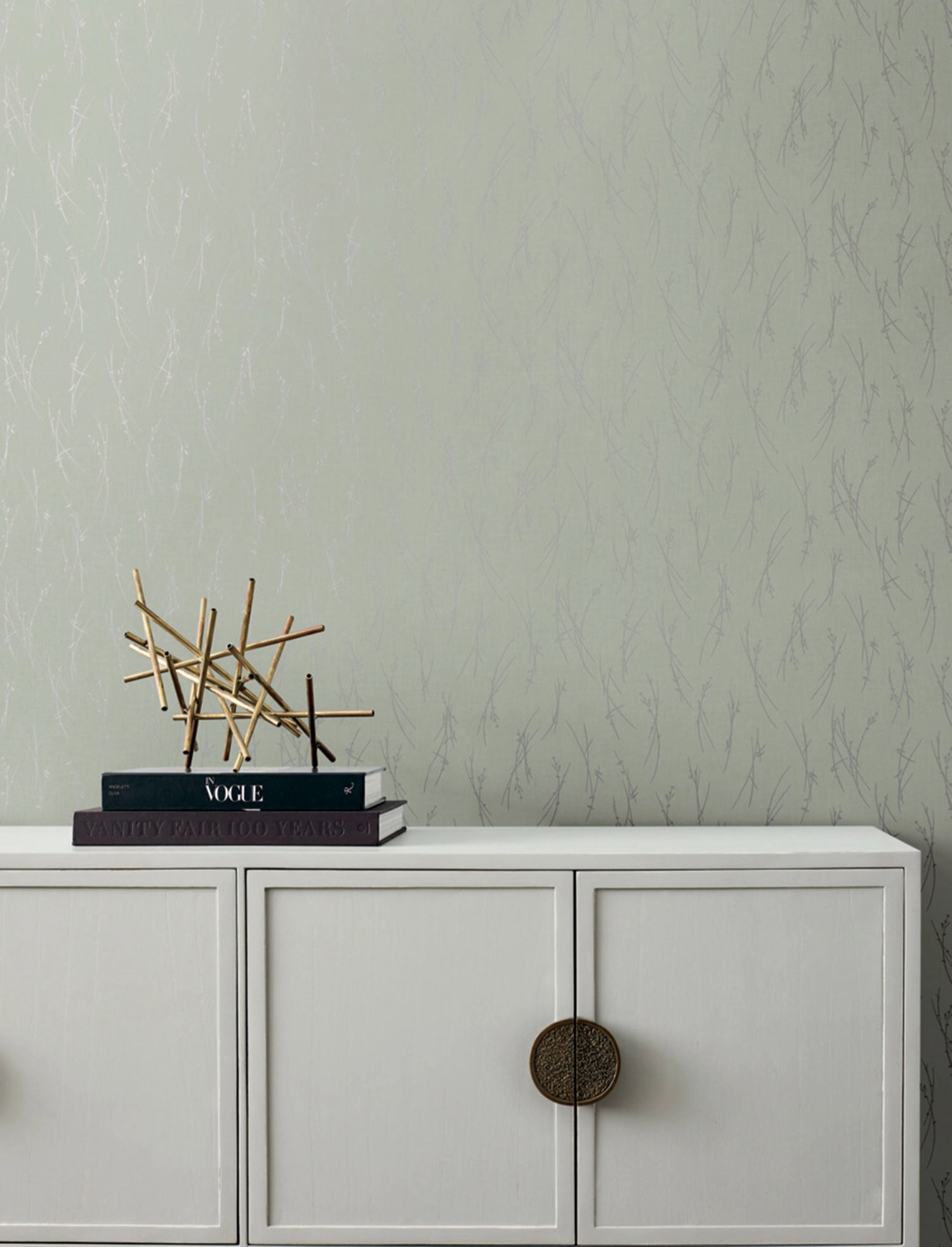 York tapéta zöld alapon metál ezüst absztrakt faág mintával