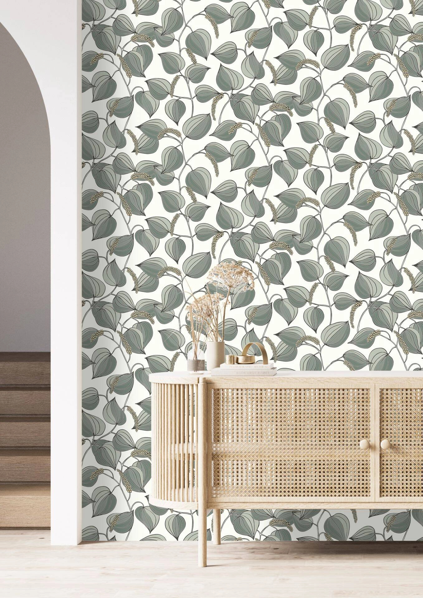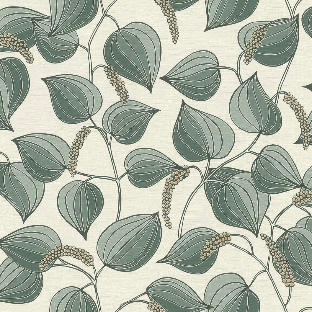 Zöld levél mintás vinyl tapéta textil struktúrával